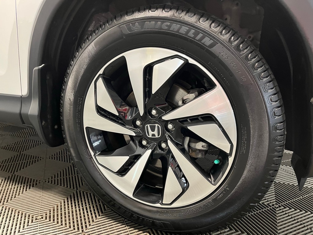 CR-V Touring, 18" Alloy Wheels, 4-Wheel Disc Brakes, 5.048 Axle Ratio, 7 Speakers, ABS brakes, Air Conditioning, Alloy wheels, AM/FM radio: SiriusXM, Auto-dimming Rear-View mirror, Automatic temperature control, Brake assist, Bumpers: body-color, CD player, Compass, Delay-off headlights, Driver door bin, Driver vanity mirror, Dual front impact airbags, Dual front side impact airbags, Electronic Stability Control, Exterior Parking Camera Rear, Four wheel independent suspension, Front anti-roll bar, Front Bucket Seats, Front Center Armrest, Front dual zone A/C, Front fog lights, Front reading lights, Garage door transmitter: HomeLink, Heated door mirrors, Heated Front Bucket Seats, Heated front seats, Illuminated entry, Lane Departure Warning System, Leather Seat Trim, Leather Shift Knob, Low tire pressure warning, Memory seat, Navigation System, Occupant sensing airbag, Outside temperature display, Overhead airbag, Overhead console, Panic alarm, Passenger door bin, Passenger vanity mirror, Power door mirrors, Power driver seat, Power Liftgate, Power moonroof, Power steering, Power windows, Radio data system, Radio: AM/FM/CD/HD/SiriusXM Audio System, Rear anti-roll bar, Rear seat center armrest, Rear window defroster, Rear window wiper, Remote keyless entry, Roof rack: rails only, Security system, Speed control, Speed-sensing steering, Speed-Sensitive Wipers, Split folding rear seat, Steering wheel mounted audio controls, Tachometer, Telescoping steering wheel, Tilt steering wheel, Traction control, Trip computer, Turn signal indicator mirrors, Variably intermittent wipers, CR-V Touring.