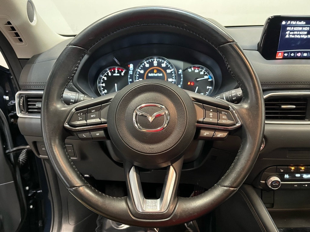 CX-5 Grand Touring, 10 Speakers, 4-Wheel Disc Brakes, 4.624 Axle Ratio, ABS brakes, Air Conditioning, Alloy wheels, AM/FM radio: SiriusXM, AppLink/Apple CarPlay and Android Auto, Auto High-beam Headlights, Auto-dimming Rear-View mirror, Automatic temperature control, Bose 10-Speaker Audio Sound System, Brake assist, Bumpers: body-color, Delay-off headlights, Driver door bin, Driver vanity mirror, Dual front impact airbags, Dual front side impact airbags, Electronic Stability Control, Emergency communication system, Exterior Parking Camera Rear, Four wheel independent suspension, Front anti-roll bar, Front Bucket Seats, Front Center Armrest, Front dual zone A/C, Front fog lights, Front reading lights, Fully automatic headlights, Garage door transmitter: HomeLink, Heated door mirrors, Heated front seats, Heated Front Sport Seats, Illuminated entry, Lane Departure Warning System, Leather Seat Trim, Leather Shift Knob, Low tire pressure warning, Memory seat, Occupant sensing airbag, Outside temperature display, Overhead airbag, Overhead console, Panic alarm, Passenger door bin, Passenger vanity mirror, Power door mirrors, Power driver seat, Power Liftgate, Power moonroof, Power passenger seat, Power steering, Power windows, Radio data system, Radio: AM/FM/HD Audio System, Rain sensing wipers, Rear anti-roll bar, Rear reading lights, Rear seat center armrest, Rear window defroster, Rear window wiper, Remote keyless entry, Speed control, Speed-sensing steering, Split folding rear seat, Spoiler, Steering wheel mounted audio controls, Tachometer, Telescoping steering wheel, Tilt steering wheel, Traction control, Trip computer, Turn signal indicator mirrors, Variably intermittent wipers, Wheels: 19" x 7J Aluminum Alloy w/Silver Finish, CX-5 Grand Touring.